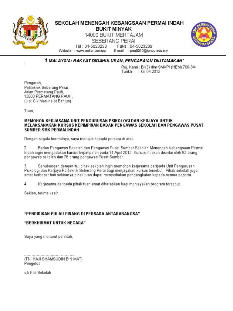 Mengetahui hormat kami kepala smk negeri 2 kotabaru ketua prakerin. Contoh surat cuti tanpa gaji untuk urusan berikut. Tuan puan jemputan ke kursus latihan dalam perkhidmatan nama sekolah kali pertama tahun 2013.